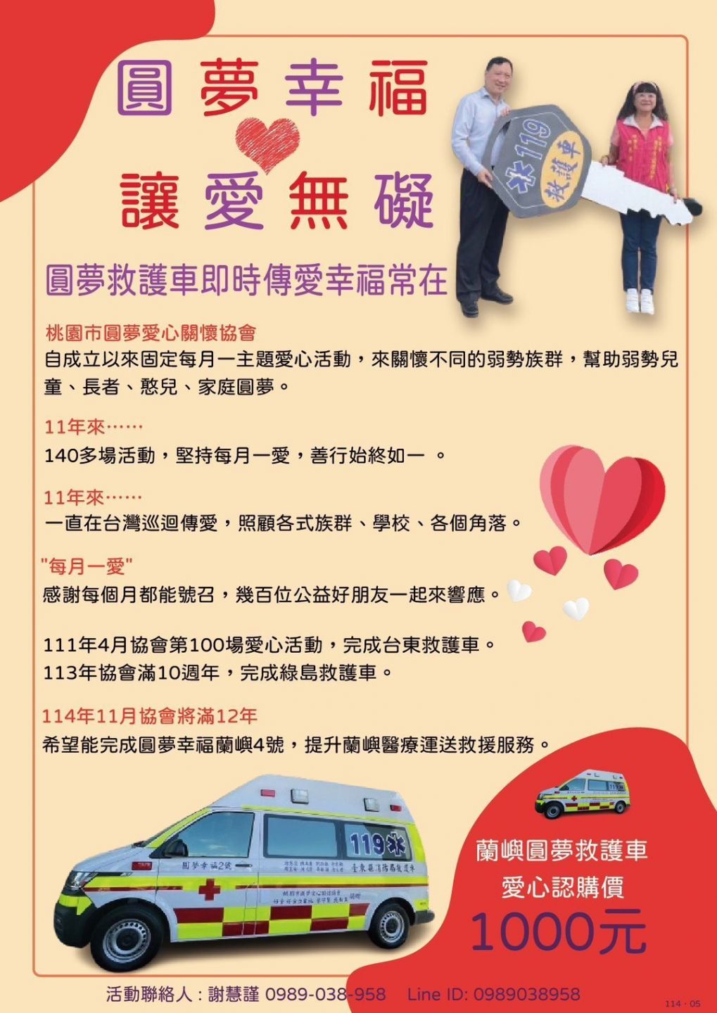 111年4月協會第100場愛心活動,完成台東救護車。