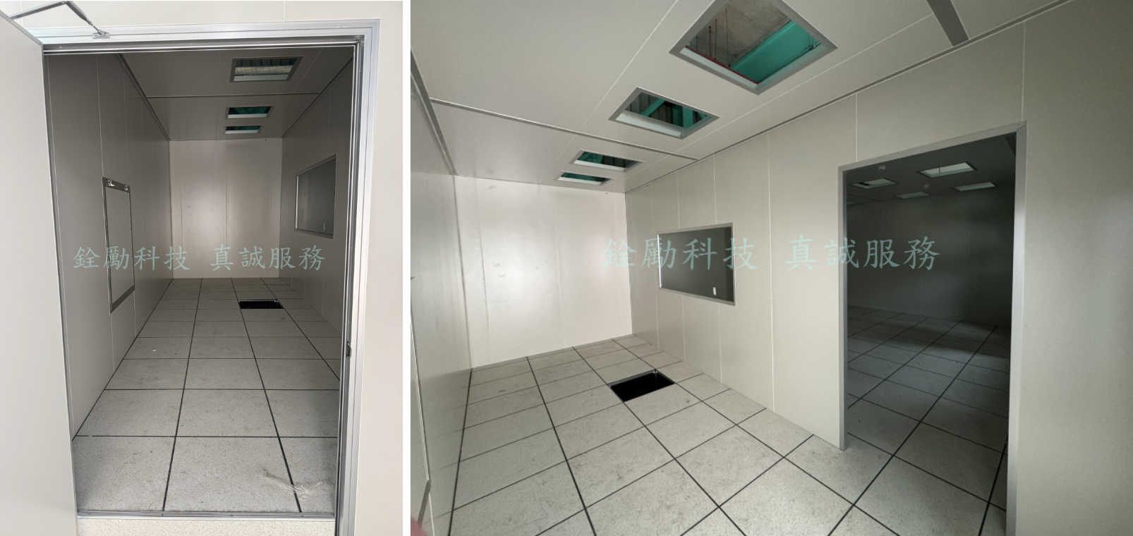 在經過業務初步的工程現勘、施工討論、工程排程後就輪到工程團隊進場,機房周圍隔間由於空間遼闊非常迅速施工完成,IT機房不同於一般空間,其環境控制需求極高,包括溫度穩定、濕度控制、潔淨度、靜電防護與防火安全等。相對的庫板天花板更符合相對規範,庫板內部填充PU(聚氨酯),可有效隔絕室內外溫度變化,協助冷氣系統穩定運作,維持伺服器運作所需的低溫環境,提升能源效率,由於業主不希望看到天花板上的螺桿懸掛在上方相當的不美觀,由於天花板空間超過6米3工程團隊使用了雙向C型鋼來增加天花板的結構強度,庫板隔間具有良好隔音性能,可降低伺服器風扇、冷氣系統等運轉噪音,創造更舒適的工作與維護環境。
