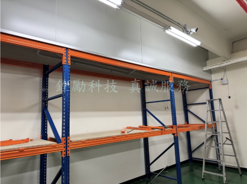 基於上述條件,我們為客戶建立完整的低溫暫存倉規劃。銓勵團隊採用庫板結構形成獨立恆溫區,並搭配精密或低溫冷卻空調,使倉內環境維持在 15 °C ±1 °C,相對濕度 40–60% RH,以避免溶劑吸濕、金屬氧化或瓶罐結露。空調具備加濕與除濕功能,並透過足夠風量讓每層貨架都能保持一致的儲存條件。